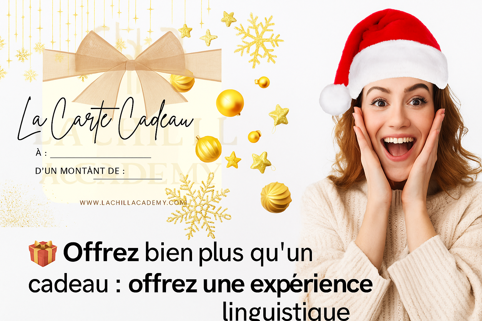 Tu bénéficies de 3 séances personnalisées selon ton niveau (anglais, espagnol ou français), et 1 séance offerte pour découvrir la méthode La Chill Academy ; une approche 100% chill, intuitive et adaptée à ton rythme.